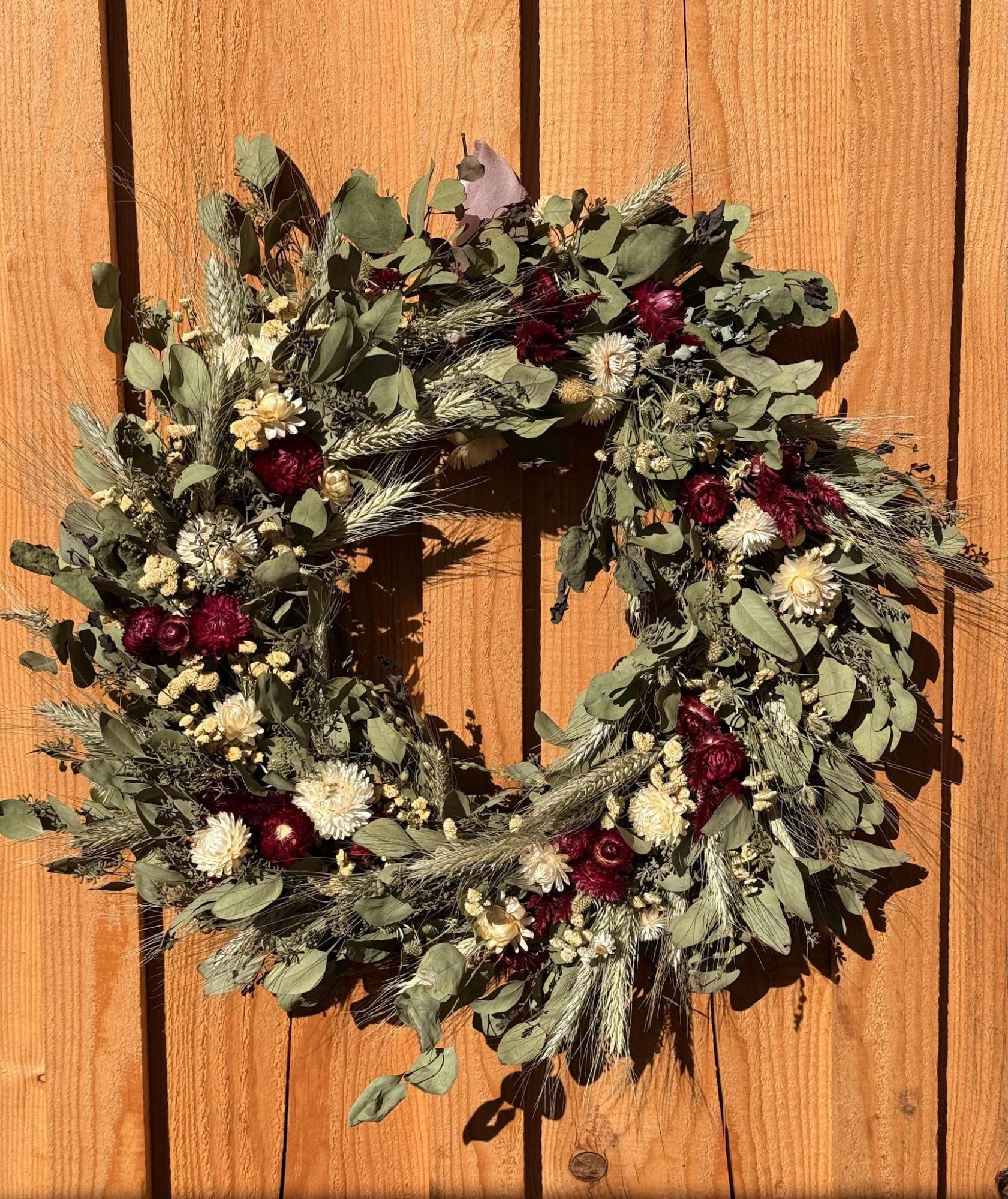 Each wreath is one of a kind, made entirely from ingredients I grew in the gardens. Every wreath comes with a care card and if you follow the instructions, these can last indefinitely! While I do make wreaths that are similar in style and color palette, each wreath is unique and has a character entirely on its own.